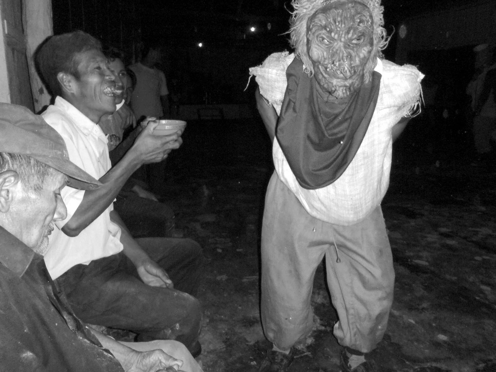 Kurz vor Mitternacht stehen alle Kinder an der Türe, sie erwarten etwas. Dann rennen sie auf einmal schreiend zu ihren Eltern, denn eine Gruppe von als Teufel verkleideten Männern tritt ein. Sie tragen Pappmasken und haben sich über Lumpenkleider Bananenblätter gehängt. Alle verschwinden von der Tanzfläche. Die Teufel drehen eine Runde, bevor sie humpelnd versuchen Tanzpartner zu bekommen. Doch: wer mit dem Teufel tanzt ist für 12 Jahre verflucht und muss in diesem Zeitraum selbst als Teufel auf dem Karneval erscheinen. Um 02:00 wiederholt sich das „Teufelgetanze“, doch dann sind die bösen Geister und Teufel vertrieben und alle gehen so um 3:30 ins Bett.